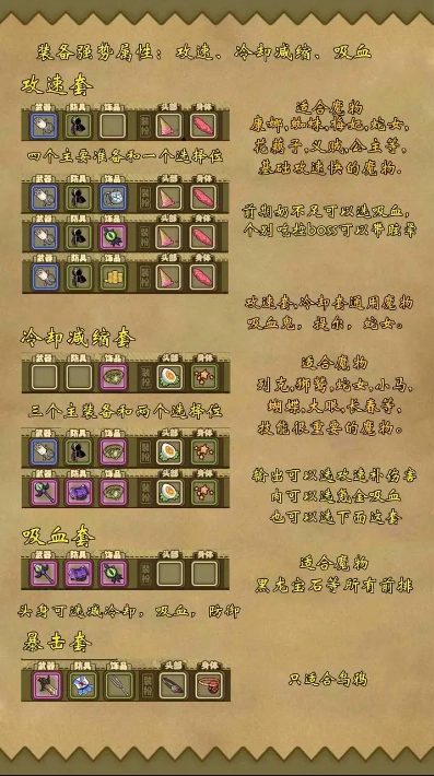 比较优秀的套装搭配,比如暴击冷却等等,用的少就没写上去