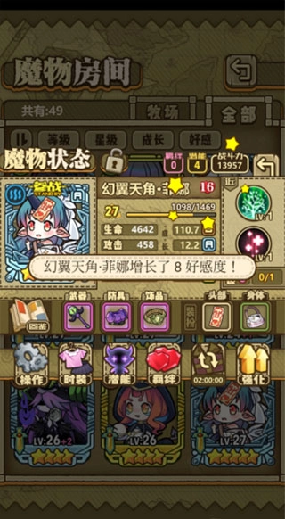 玩家每天可以给魔物送许多礼物,有的礼物增加好感度数值高,有的礼物甚至还会降低魔物的好感度。玩家需要对羁绊的礼物进行选择,这样才能更快刷出高羁绊值。