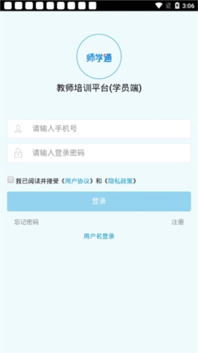 2、首次进入师学通软件需要登录,输入手机号密码登录软件。
