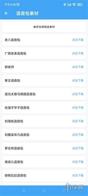 2、在语音包板块,你会看到丰富的选项,比如老八语音包、广西老表语音包、混元太极马保国语音包和罗志祥语音包等。