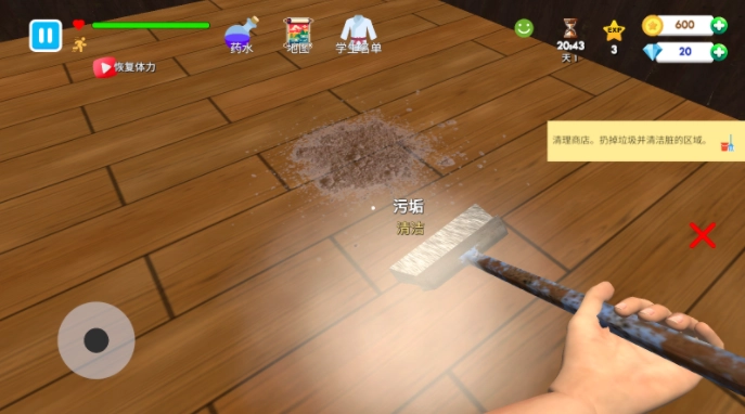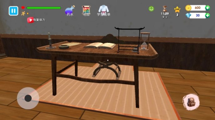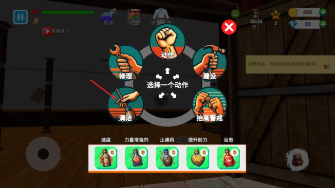 4、接下来要做的是清理我们的武馆,点击右下角的背包,在这个界面里能切换到清洁等各类操作选项。