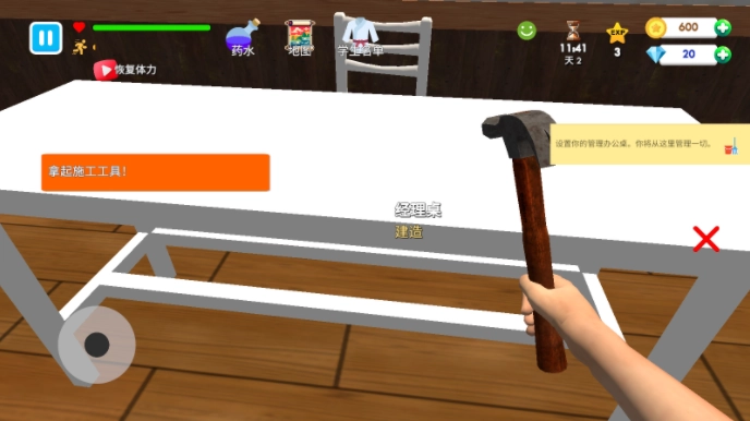 6、切换到建设按钮后,我们可以去打造自己的办公桌。