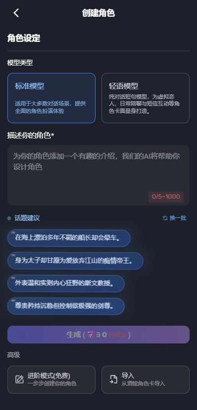 3、用户在“+”号版块也可以自定义设置角色。