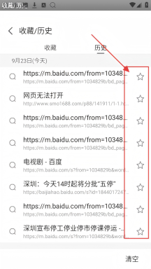 3、进入【收藏/历史】的历史页面,会看到多条历史记录,每条记录旁边都有星星图标,点击即可完成收藏操作。