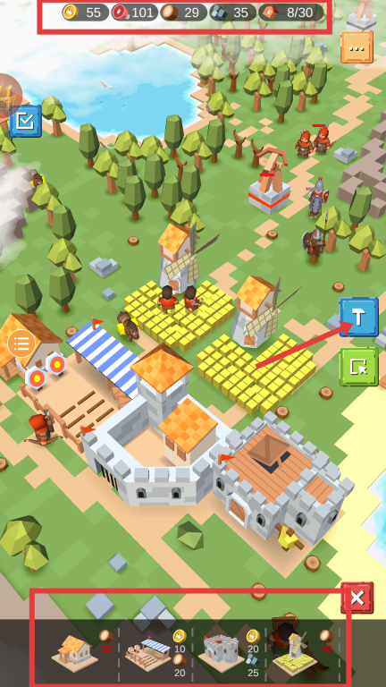 3、点击屏幕下方的建筑与单位图标,消耗相应资源即可招募士兵或建造建筑,比如用一定数量的金币和木材就能招募弓箭手、步兵之类的单位,合理分配资源才能打造出强大的战斗阵容。