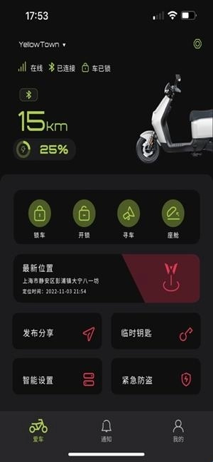 【智能控车】配备多元控车方式;蓝牙近距感应解锁;手机远程操控车辆开关锁,忘锁车辆一键搞定。