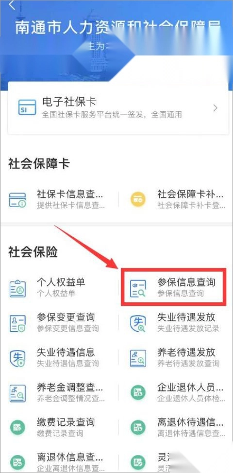 1、进入 “社保查询” 页面,点击 “参保信息查询” 进入。
