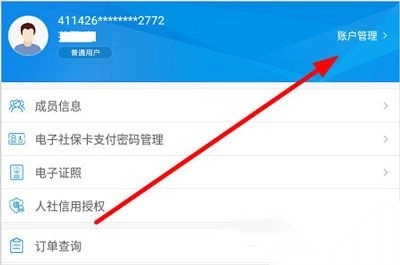 1、进入个人中心后,点击页面右上角的 “账户管理” 选项。