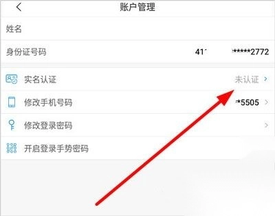 2、然后在分类列表中,点击 “实名认证” 右侧显示的 “未认证” 标识。