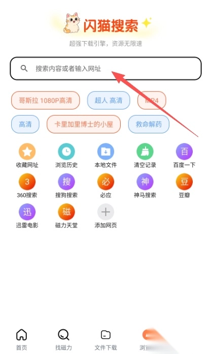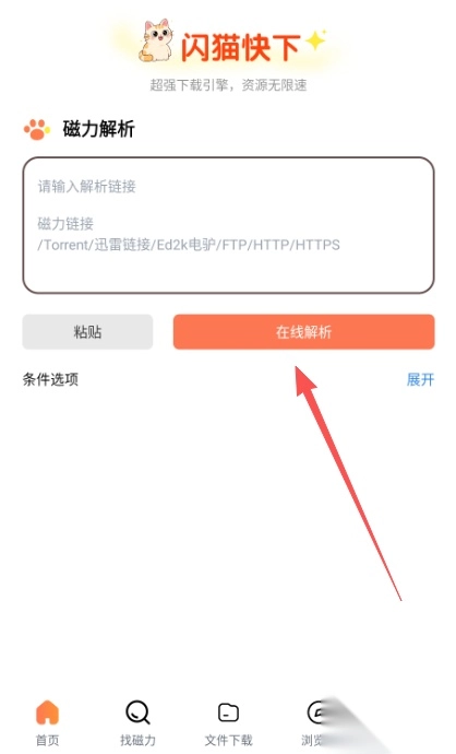 1、复制资源链接,粘贴至闪猫快下首页搜索框;