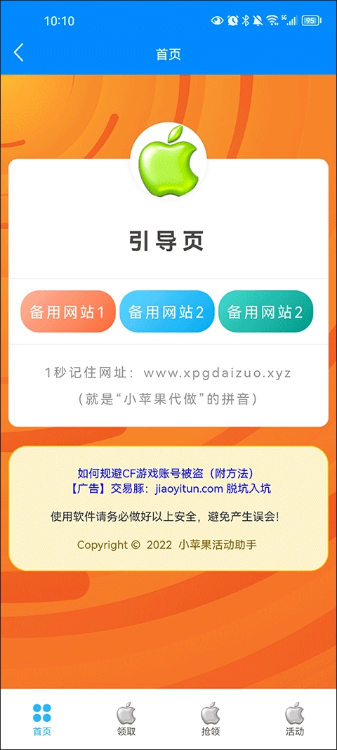 1、在本站下载穿越火线小苹果活动助手手机版后,进入软件首页并点击领取界面;