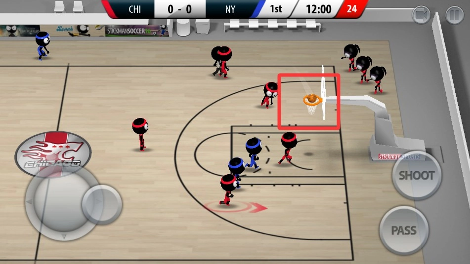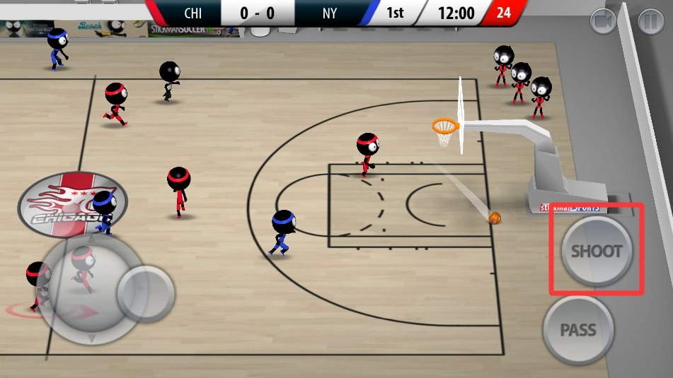 《火柴人篮球2017(Stickman Basketball 2017)》是Djinnworks GmbH开发的休闲体育竞技游戏,主角设定为火柴人。游戏操作采用虚拟摇杆搭配双按键的设计:左侧摇杆负责控制角色移动,右侧按键在进攻场景下对应“传球/投篮”功能,切换到防守场景时则变为“抢断/封盖”,整体操作逻辑清晰明了,新手也能快速上手。在游戏过程中,玩家可以操控火柴人角色完成运球、传球、投篮、扣篮、盖帽等一系列篮球动作,其中部分招式借鉴了NBA球星的动作风格,比如翻身跳投、暴力扣篮等。