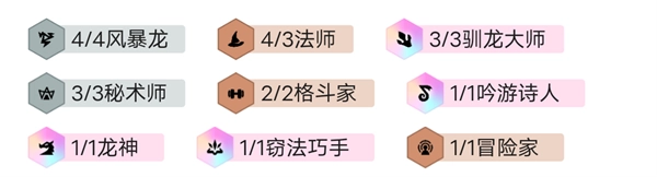 【羁绊组成:五法师,四风暴,两驯龙,三秘术,一龙神,一吟游诗人,一窃法巧手,一冒险家】