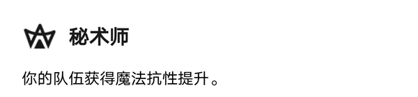 这个羁绊非常好理解,就是给团队增加魔抗,在后期凑齐3秘术师,基本上克制绝大多数的用法术打伤害的阵容,而且有了这个羁绊前排选择装备的时候也可以多去考虑护甲,腰带的装备。