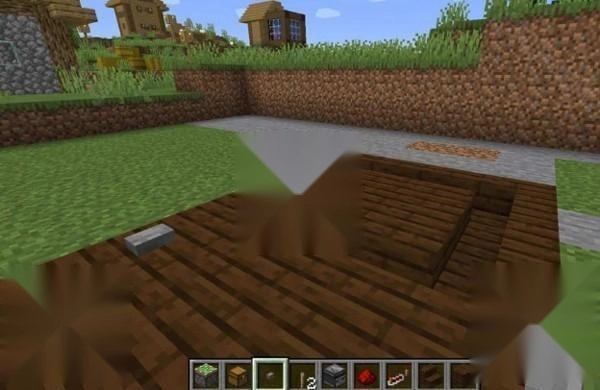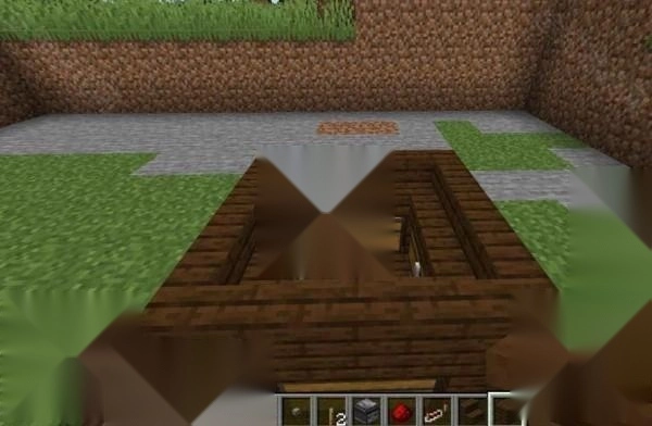 6、最后我们再铺放木板进行隐藏,再摆好1个按钮就做好我们的地板机关啦!