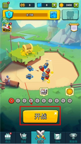 1、打开艺术战争游戏,点击开战按钮开始游戏,完成对应关卡即可获取相应的奖励;