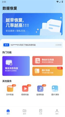 文件数据恢复大师是一款专业的数据恢复工具,能帮用户轻松找回手机里丢失的各类数据,查找过程便捷省心,可轻松定位不同类型的数据,方便大家使用。无论是照片、视频,还是短信、聊天记录等数据,都能轻松恢复,让你不再为误删数据而担忧。