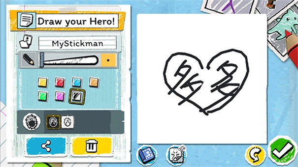 在你的新速写本里,能存下无穷无尽的英雄与工具图画!随时都能在这两个角色间切换,让你的游戏变得更有意思!