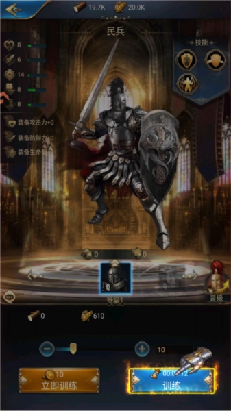 这是决定玩家实力强弱的核心所在,所有科技研发、兵种培养、资源发展都与城堡等级紧密相关。对于初期的新手玩家,建议把所有资源都投入到城堡升级上,全力冲刺到10级。因为新手起步阶段冲到10级仅需2-3天,所以在城堡达到10级之前,只需生产一级士兵辅助资源采集就行,等城堡10级后再根据任务要求逐步生产其他兵种。