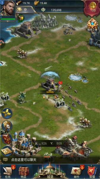新手期享有保护机制,玩家可快速扩充军队、升级设施,建议优先升级城堡至10级。