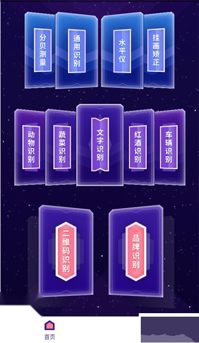 1、在首页点击使用分贝测量、通用识别、水平仪、挂画矫正这类功能
