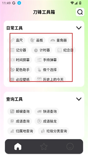 刀锋工具箱是一款集成了多种实用小工具的多功能工具箱,涵盖了视频解析、天气预报、计算器、Logo制作、画板、手持弹幕等丰富功能,能够满足日常生活中的各类需求。