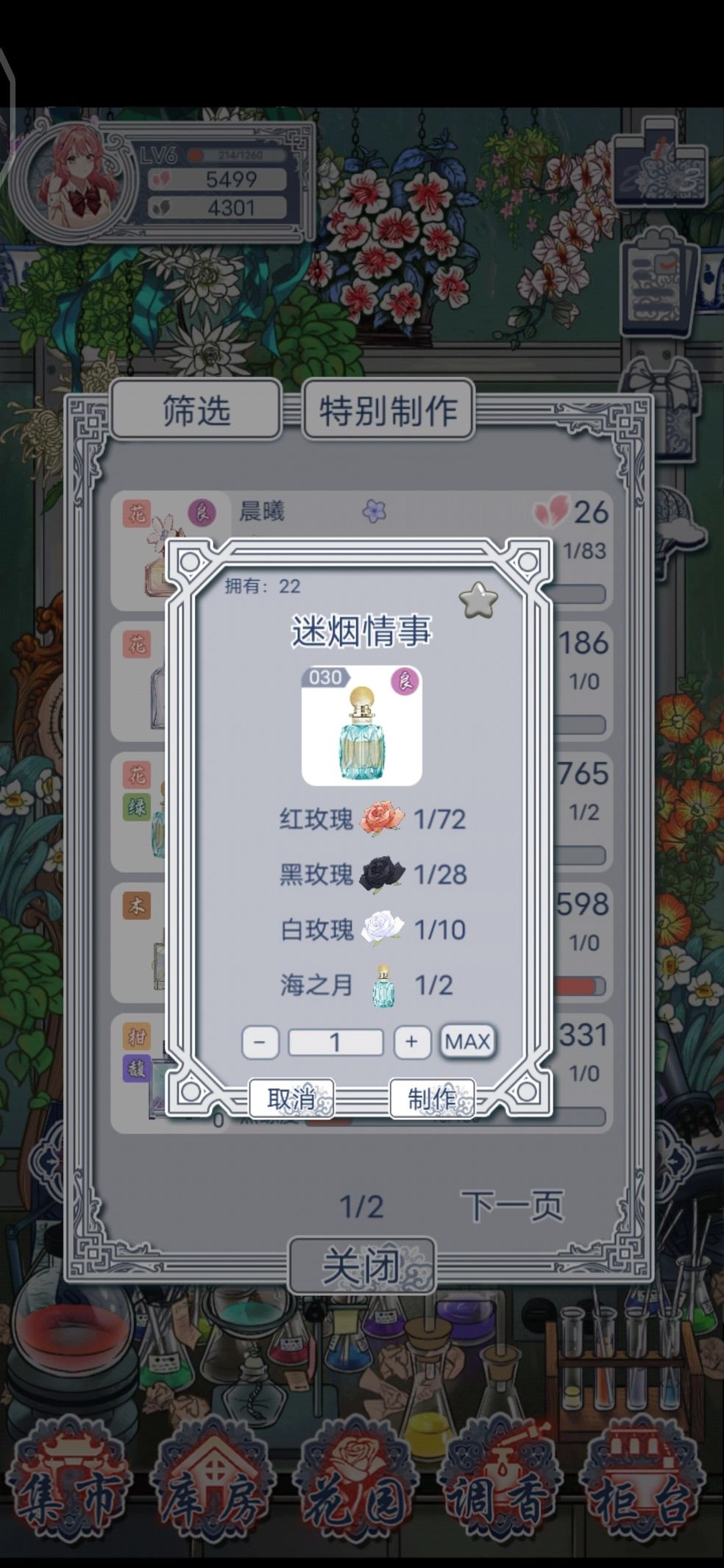 制作香水的过程自由度很高,玩家可以挑选不同种类的花朵,从而沉浸在这段体验里。