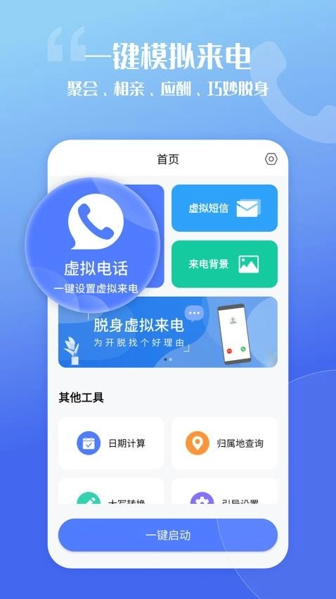 脱身虚拟来电让用户日常设置虚拟提醒的方式更便捷,随时能在应用内编辑,一站式满足接听虚拟电话的需求,帮你轻松脱离不想待的场景,享受便利服务;同时还能使用多种工具,助力高效完成各项事务,提升生活与工作效率!