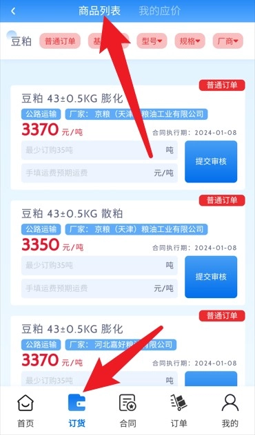 5.点击订货进入商品列表,可浏览商品报价详情并提交订单审核。