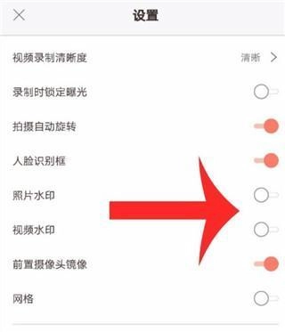 4、设置方式为分别点击照片水印与视频水印右侧的红色锁定按钮,点击后该按钮会转为灰色,这表明水印添加功能已关闭,后续拍摄照片或视频时水印会自动去除;若将照片水印和视频水印右侧的灰色按钮开启,使其变为红色激活状态,拍摄的照片或视频就会添加水印。
