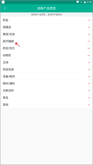 2、页面上展示了多种产品类型,你可以从中挑选出需要进行招商的产品类型。比如选择医疗器械这一类别,点击对应的选项即可。