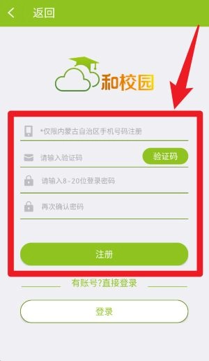 2、如未注册账号,可点击注册按钮,填写内蒙古手机号码、验证码及设置密码完成注册。