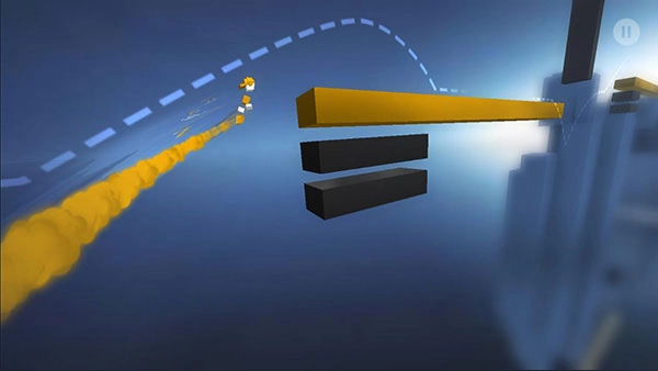1、跑酷过程中会用到双连跳技巧,当身体即将落到最低点时,用右手拇指轻触屏幕完成起跳。