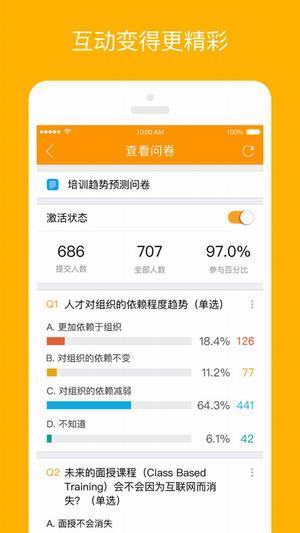 1、完备的课程管理系统。支持问卷模板灵活组合,可即时调控互动环节,借助日历视图能让课程安排清晰有序。