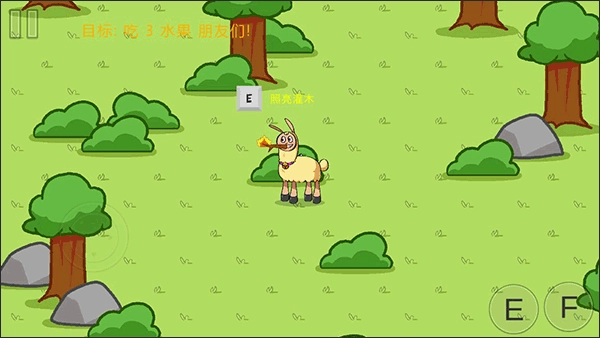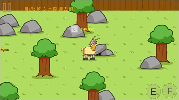 第一个水果朋友在这个石头这,我们需要找到蜂窝来让他出来。