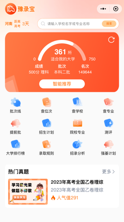 豫录宝不仅收录了海量院校数据,还能根据考生情况给出精准的个性化推荐,大大简化了志愿填报的流程。对考生来说,这无疑是一款实用的好工具。它让高考志愿填报从过去那种机遇与风险交织的艰难抉择,转变为有科学数据支撑的理性决策,帮助学生更清楚地了解自身优势,从而挑选出最适合自己的大学和专业。