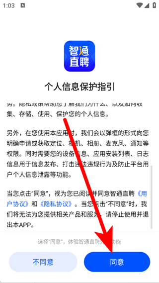 1、打开智通直聘,在弹窗中点击同意。