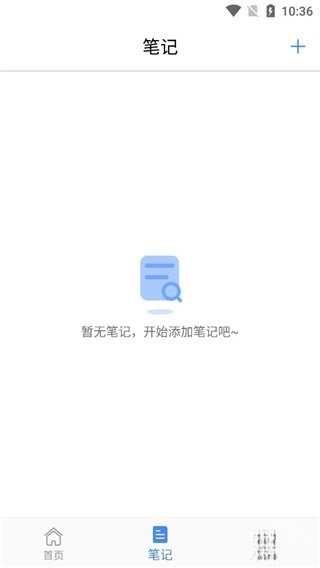 8、进入笔记页面,点击右上角加号可以添加学习笔记。
