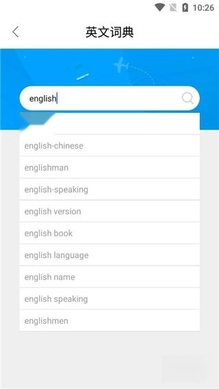 2、输入想要查询的英文单词后,会出现相关的下拉选项,您可以选择所需查询的单词,也可以直接点击搜索按钮。