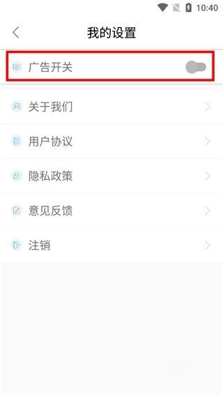 10、选择设置,关闭广告开关,平台内将不再出现广告,让您使用更加愉快。