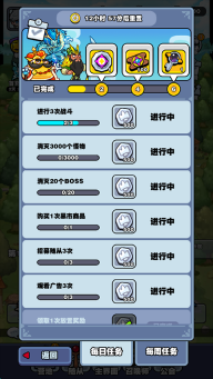 4、每日、周任务: 完成任务获得道具奖励。