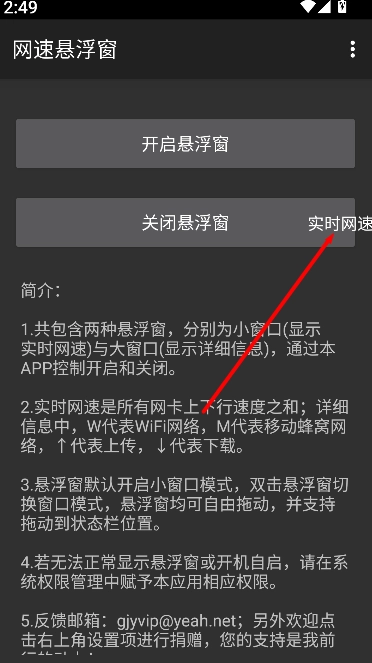 进入软件后,首先要在权限设置里开启悬浮窗口功能,这样才能保证网速数据可以在屏幕上方正常显示。