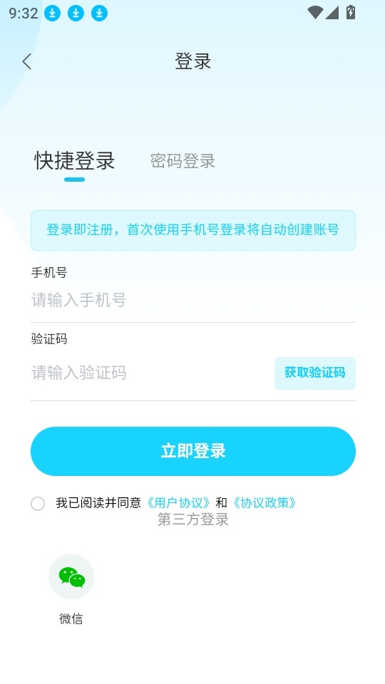 2、进入登录界面后,输入手机号与验证码,点击“立即登录”按钮即可一键登录平台。
