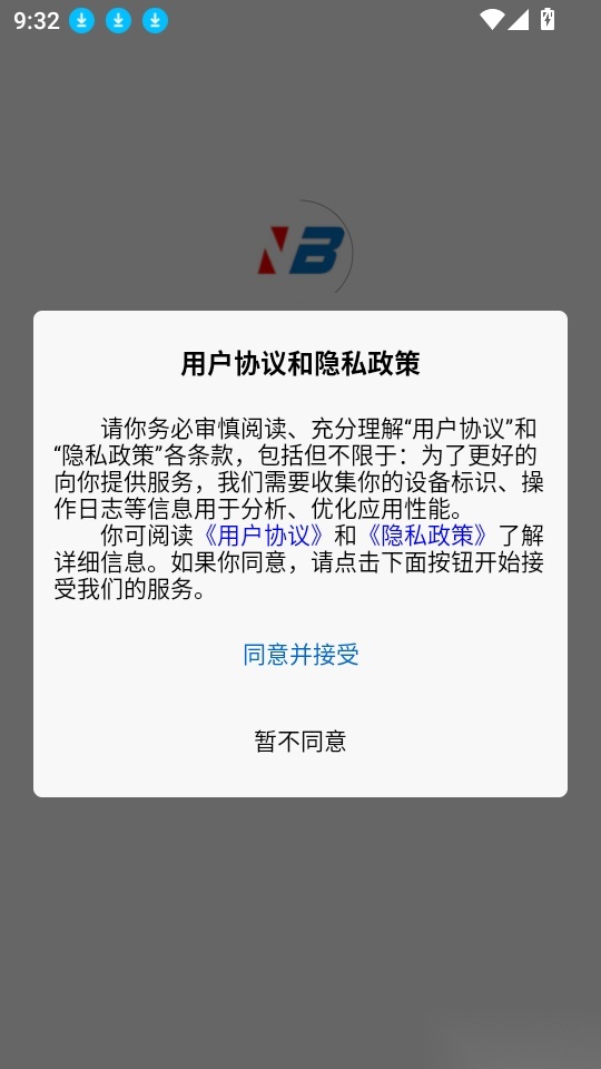 1、首先打开应用点击“同意并接受”按钮来进入中。