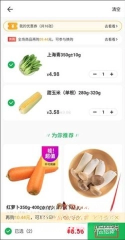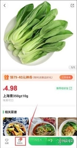 3、按照同样的步骤添加其他商品,完成后点击下方的购物车图标开始结算。