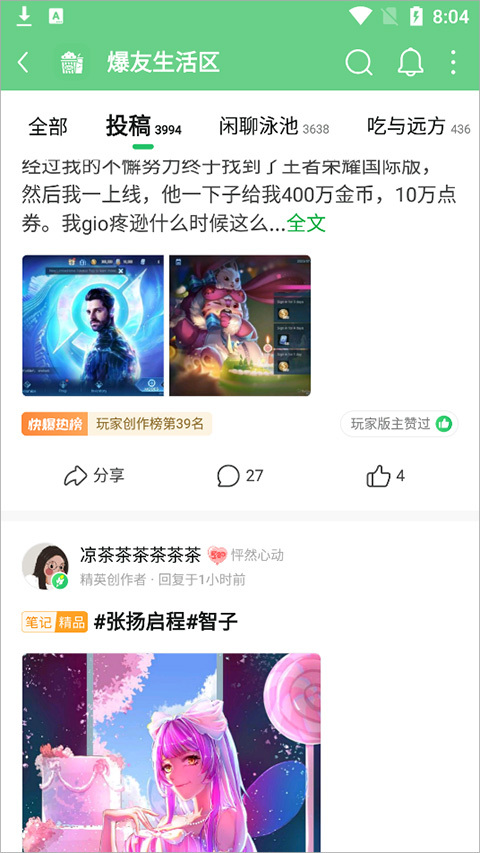 找到好友发布的帖子进行点击