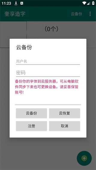 5、完成创作后,你可以通过云备份功能保存字体,并在内直接使用。