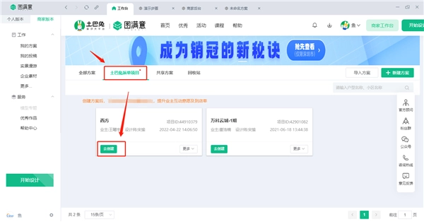 1、登录公司子账号,进入“我的方案”界面,在土巴兔派单项目中选定对应的项目ID进行创建。