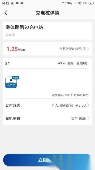 挑选合适的充电位置,确定好支付方式后点击立即充电,车辆就会开始充电补充电量。
