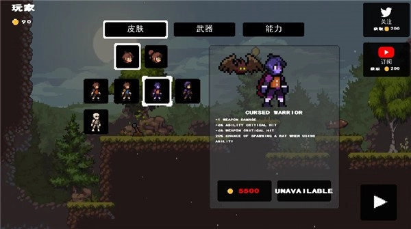 6、玩家可在前往下一关前进行修整,购置角色皮肤、武器、能力等。